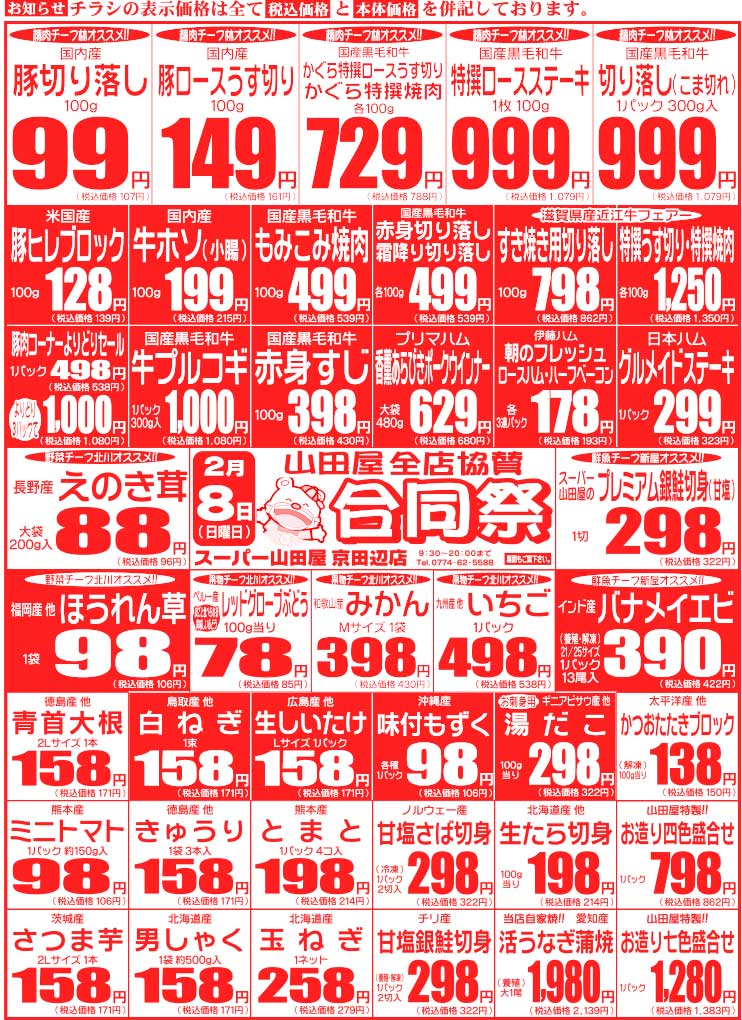| 日曜日 | 全部がお買得!! 水も安い!! 月に二回の半額市も 開催中!!