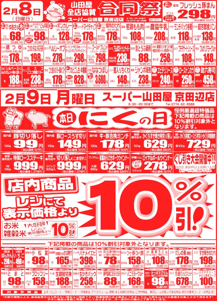 | 月曜日 | 大好評!! 店内10%引きDAY (一部対象外あります) 普段特売にならないものも10%引き!!